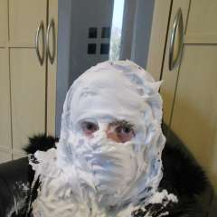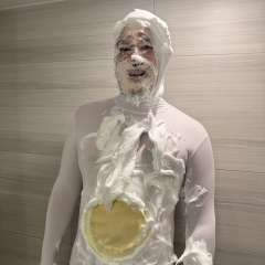 Garakguy47 was surprised by MessyLady_v2 with a big sloppy cream pie to the face