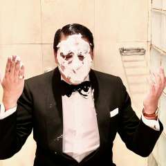 Messymissmia was surprised by The Great Reinholdo with a big sloppy cream pie to the face